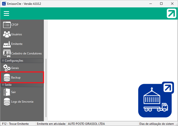 Ao fechar o Atual CT-e o sistema também perguntará ao usuário se deseja realizar o backup naquele