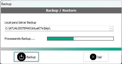 Backup e clique no botão Backup. O Sistema realizará a cópia de segurança para o local informado.