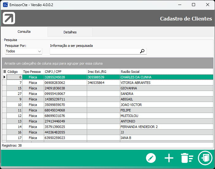 Através da tela é possível Editar (F3), Inserir (F6) ou Deletar (F9) um cliente: