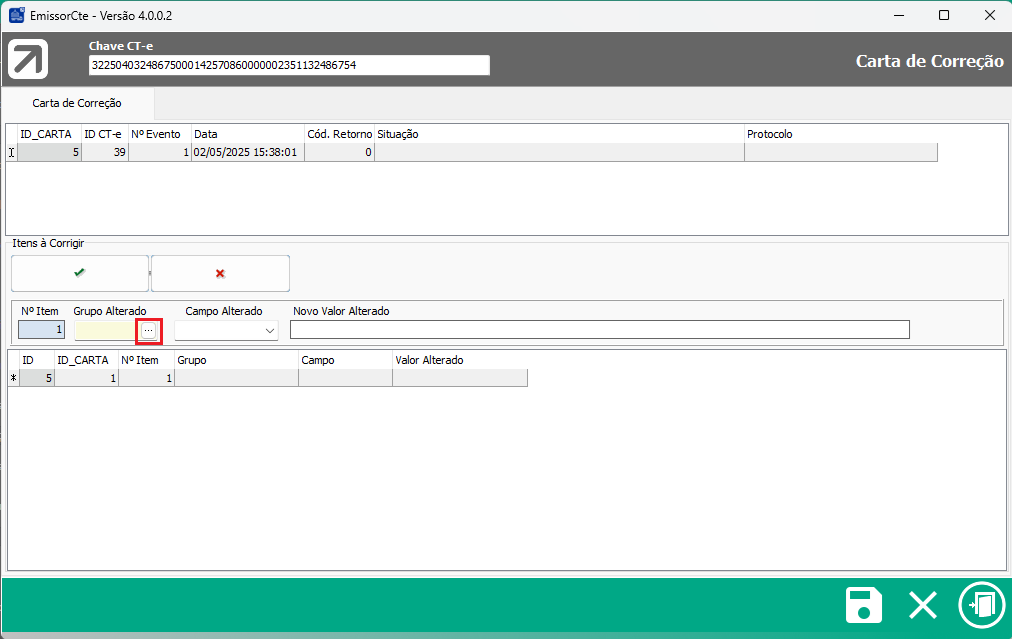 Exibida quando clicado no botão (...) do campo Grupo Alterado, da Carta de Correção: