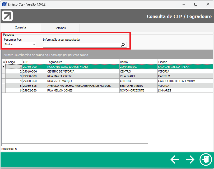 Acessada através do menu de cadastros: Endereço >> CEP / Logradouro. ou através do botão