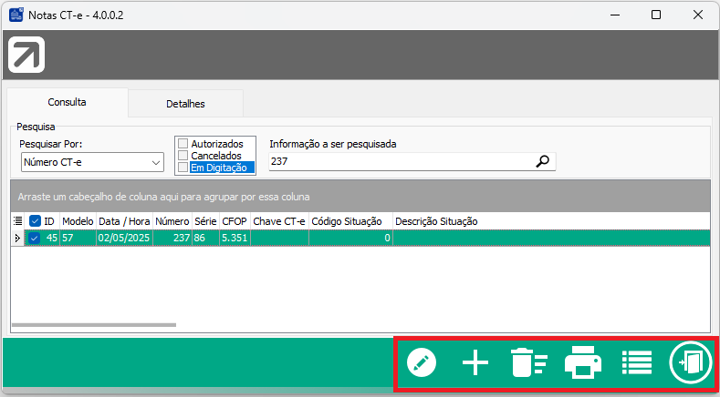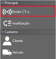 Pode ser acessada através do botão Emitir CT-e na tela principal do sistema.