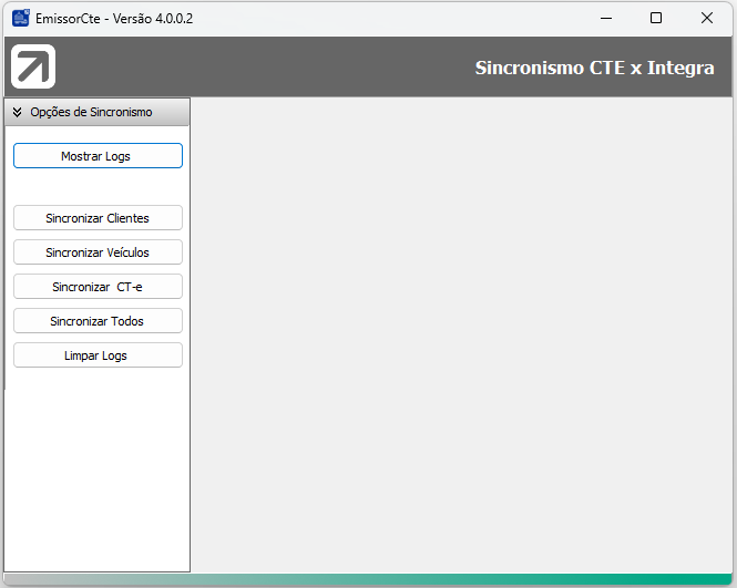 Através da tela é possível visualizar os log's de erro e realizar sincronismos com o Integra.