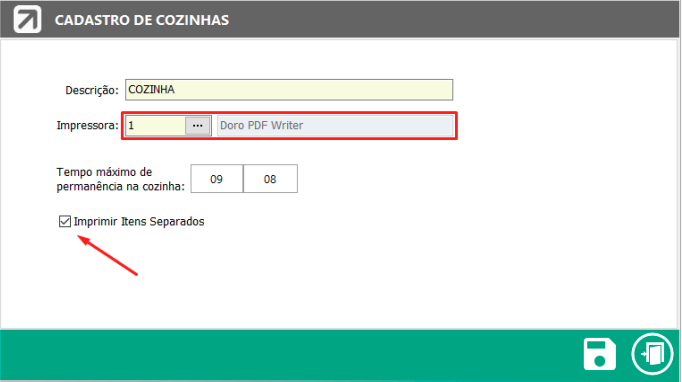 Feito isso, todos os itens do grupo que possuir uma cozinha com a opção marcada terão seus itens impressos separadamente na cozinha.