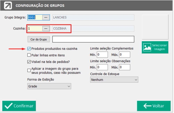 Nota: Importante verificar se o Grupo está usando a cozinha correta, para isso acesse o menu Grupos.
