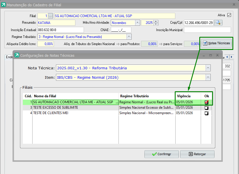 A data padrão seguirá o estabelecido pela NT 2025.002, sendo 05/01/2026 já definifo no sistema.