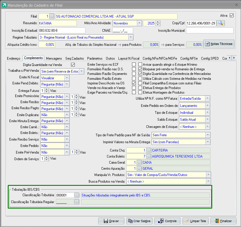 Obs.: No cadastro de Filiais, o cClassTrib 000001 virá pré-configurado para evitar qualquer paralisação na emissão