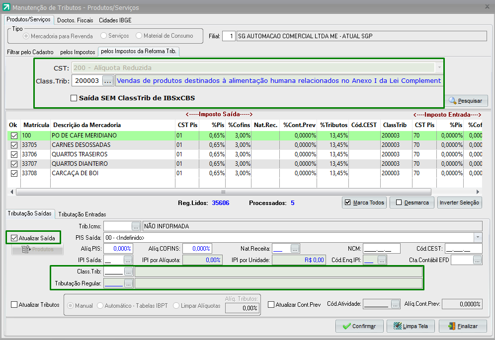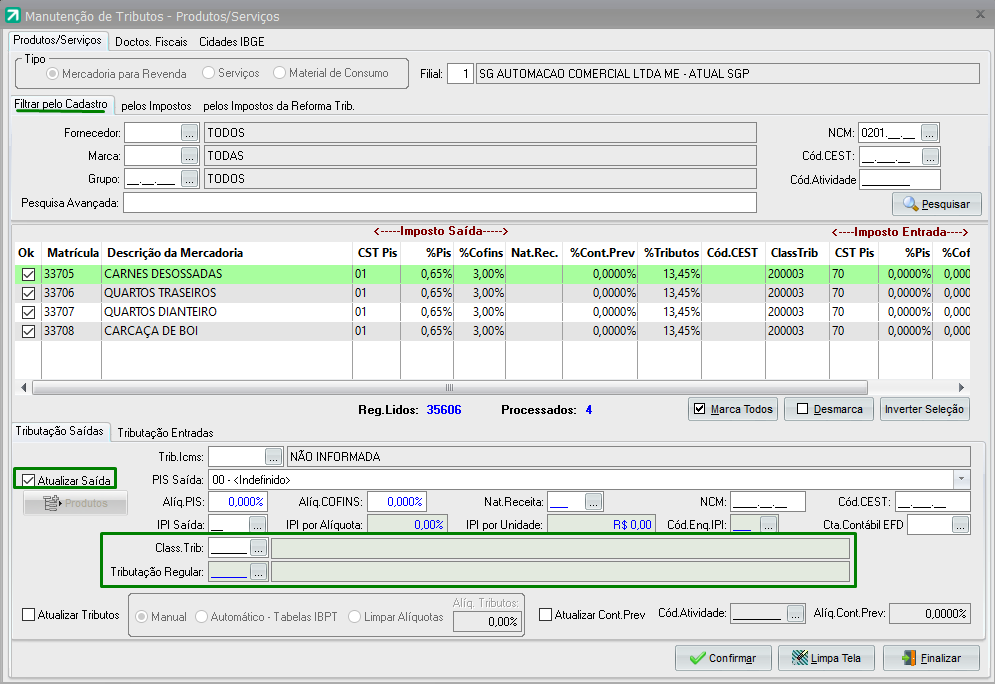 visualizar os novos impostos e selecionar qual seria o correto, seja para a sua operação a ser utilizada, produto